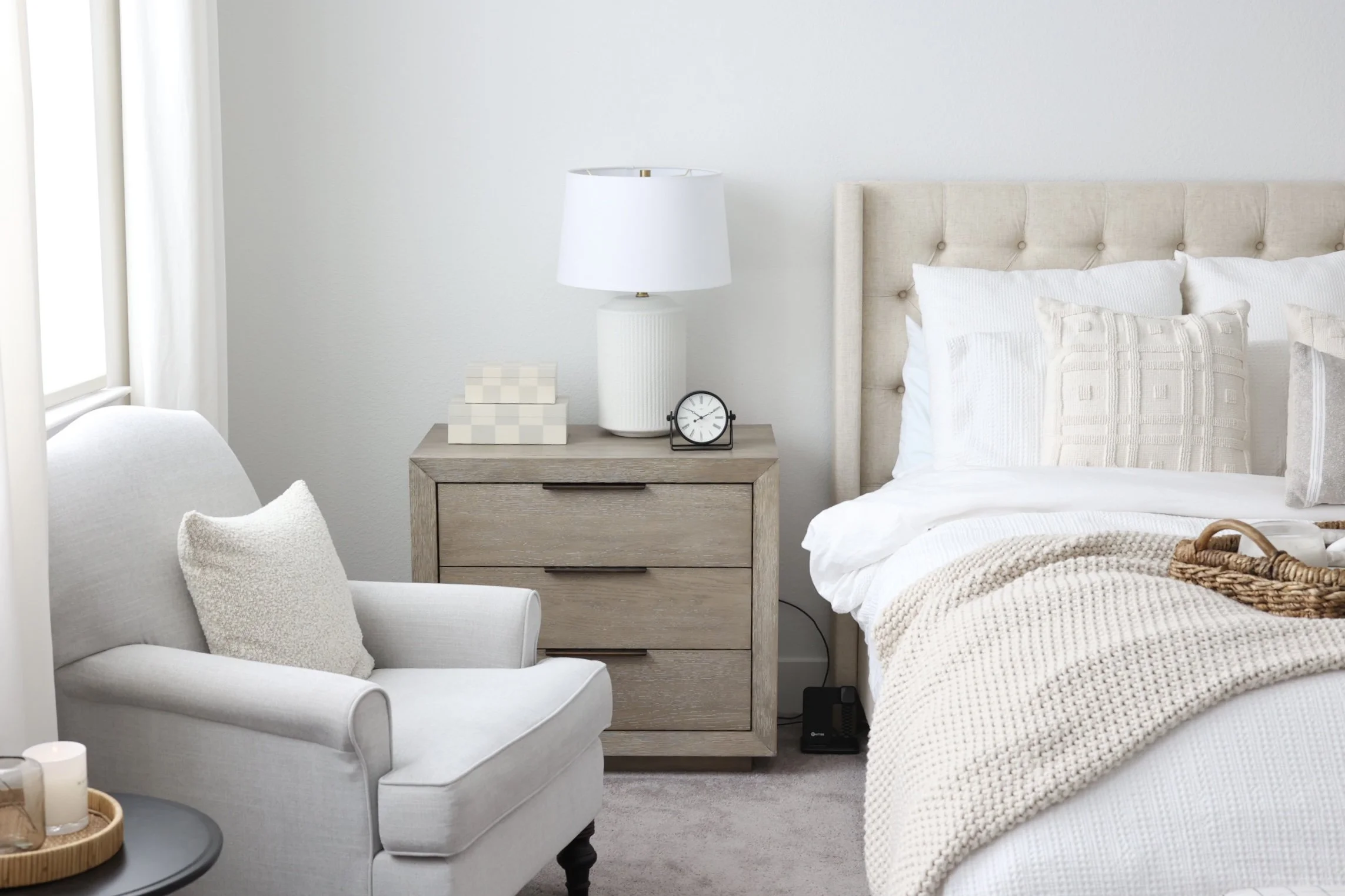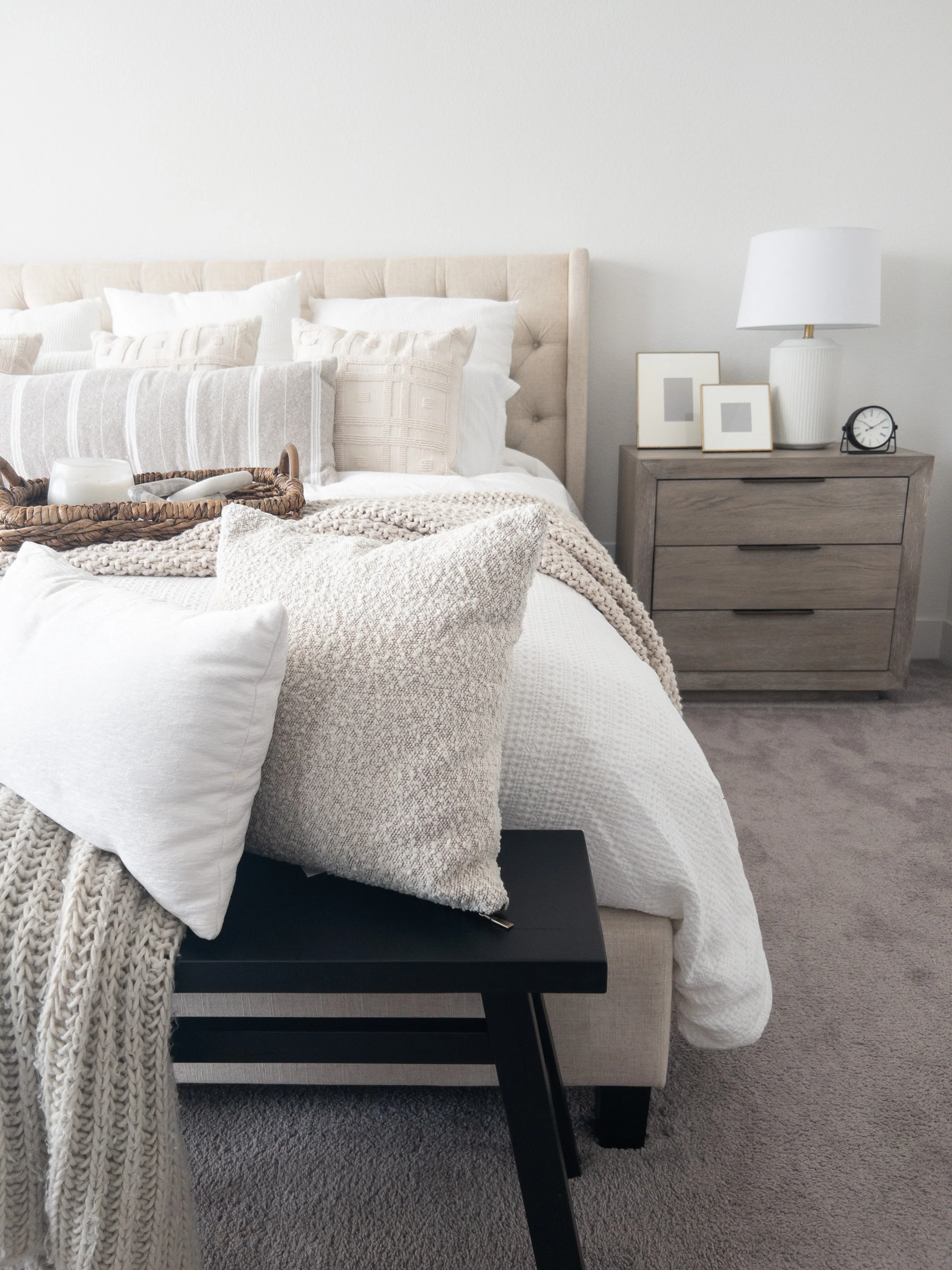 THE PRIMARY- Our primary bedroom is a work in progress. I would love to add an accent wall and a few other design elements such as a rug and a few other pieces of décor to tie everything in.